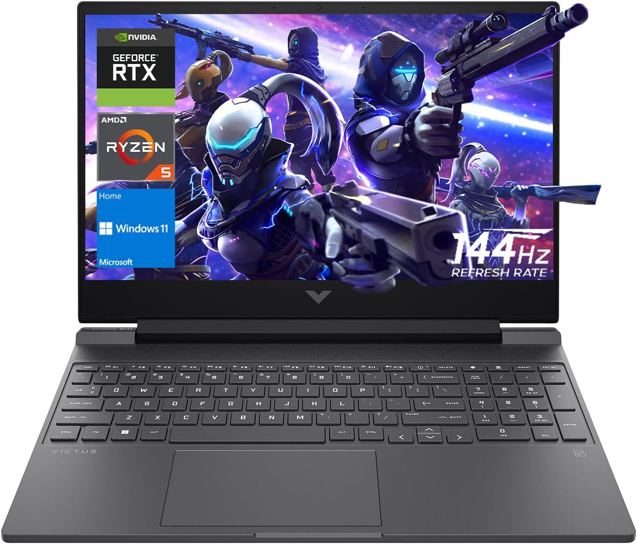 The HP Victus 15 Gaming Laptop is designed for immersive gaming experiences with its high-refresh-rate display, powerful AMD Ryzen processor, and NVIDIA GeForce RTX graphics. Featuring upgraded memory and storage, this laptop delivers smooth performance and responsiveness for all your gaming and productivity needs.