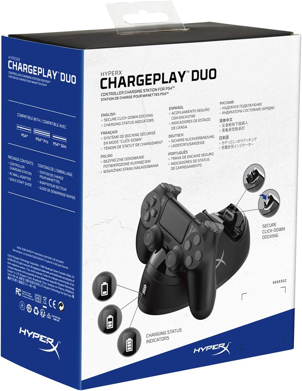 The HyperX ChargePlay Duo is a convenient and reliable charging station for PlayStation 4 controllers. Keep two DUALSHOCK 4 wireless controllers charged and ready for action with this easy-to-use charging station.