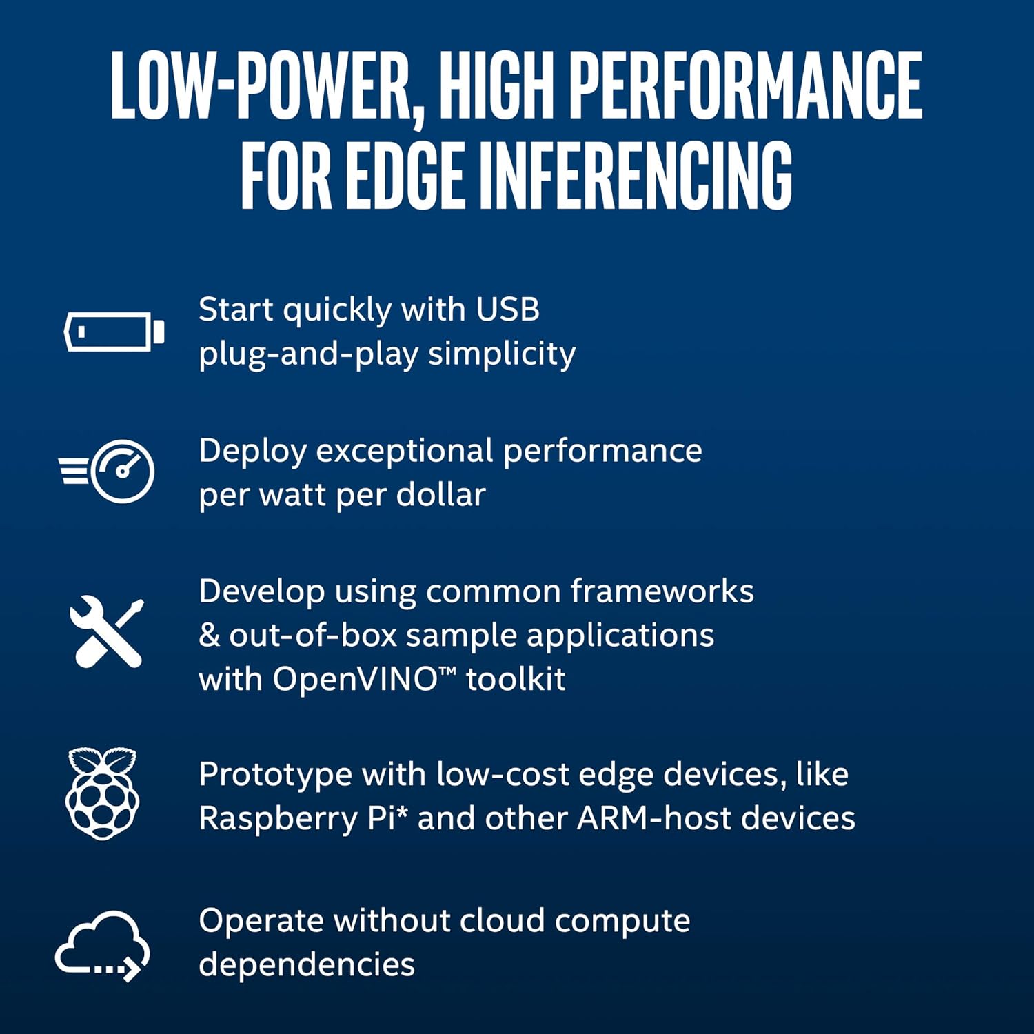 The Intel Neural Compute Stick 2 (NCS 2) enables rapid prototyping of deep neural network applications. Powered by the Intel Movidius Myriad X VPU and supported by the Intel Distribution of OpenVINO Toolkit, the NCS 2 offers enhanced performance and efficiency for computer vision and AI at the edge.