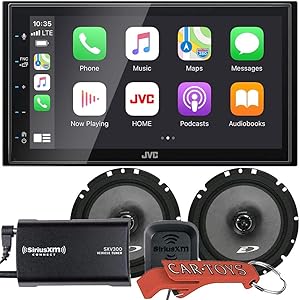* **Receiver:** JVC KW-M560BT * **Display:** 6.8" Capacitive Touchscreen * **Connectivity:** Apple CarPlay, Android Auto, Android USB Mirroring, Bluetooth * **Speakers:** Premium Alpine Coaxial Speakers * **Tuner:** SiriusXM Tuner * **Features:** Hands-Free Calling * **Includes:** Car Toys Bottle Opener KeychainWe partner with Amazon and other retailers to provide accurate product information and convenient access to purchase options. As an Amazon Associate we earn from qualifying purchases.