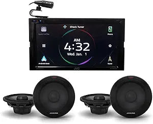 JVC KW-M865BW Wireless CarPlay Receiver with Alpine Speakers