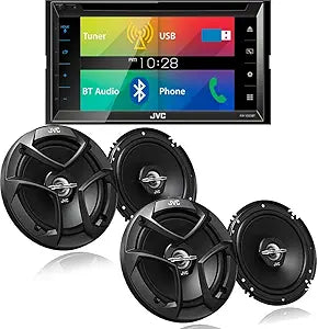 The JVC KW-V320BT El Kameleon Receiver paired with Four CSJ620 6.5" Speakers delivers an immersive audio experience for your vehicle. Combining a feature-rich receiver with high-performance coaxial speakers, this system ensures clear sound and versatile connectivity.