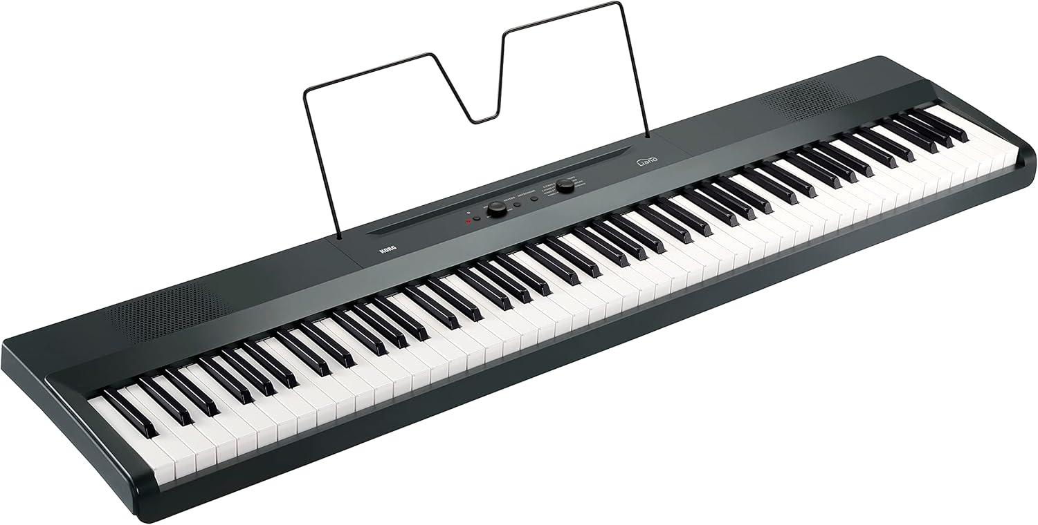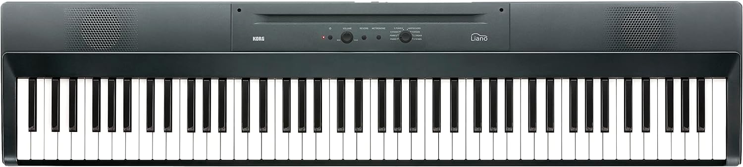 The Korg Liano 88-Key Portable Digital Piano offers a slim, lightweight design without compromising on sound quality or playability. With semi-weighted keys, built-in speakers, and battery power, the Liano is perfect for beginners and experienced players alike, whether at home or on the go.
