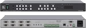 The Kramer VP-4x4K Matrix Switcher is a high-performance solution for routing computer graphics video and balanced stereo audio signals. Capable of handling resolutions up to and exceeding UXGA, this matrix switcher ensures every input can be directed to any or all outputs simultaneously, maintaining signal integrity.