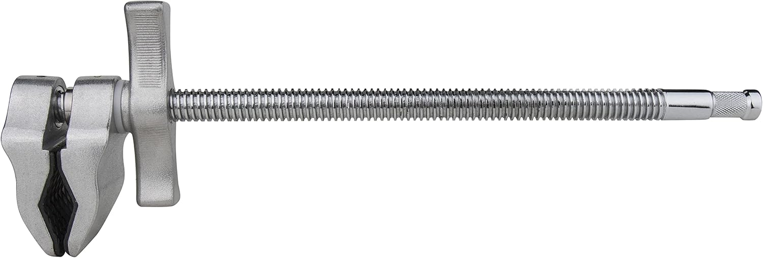 The Kupo 9in Super Viser Clamp End Jaw (KG603912) is a robust and lightweight mounting solution constructed with an aluminum die-casting body. Its moveable jaws are designed for secure attachment to tubes or planks up to 101mm. Featuring a grooved design on the threaded shaft, this clamp ensures both jaws remain aligned. The integrated 16mm pin and socket allow for versatile accessory mounting, making it an essential tool for photographers, filmmakers, and stage technicians.