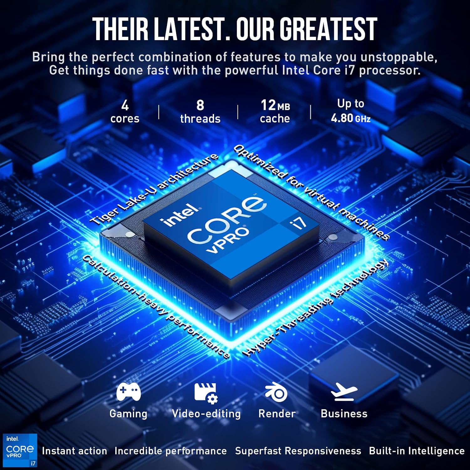 - Processor: Intel Core i7 vPro 1185G7 (Up to 4.8 GHz, 4 Cores, 8 Threads)
