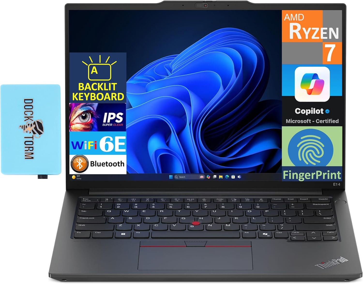 The Lenovo Thinkpad E14 G6 Business Laptop is designed to deliver exceptional performance and reliability for professionals on the go. Featuring an AMD Ryzen 7 processor, ample memory, and a high-speed SSD, this laptop is optimized for productivity and multitasking. Includes a DKZ USB Port Expander for enhanced connectivity.