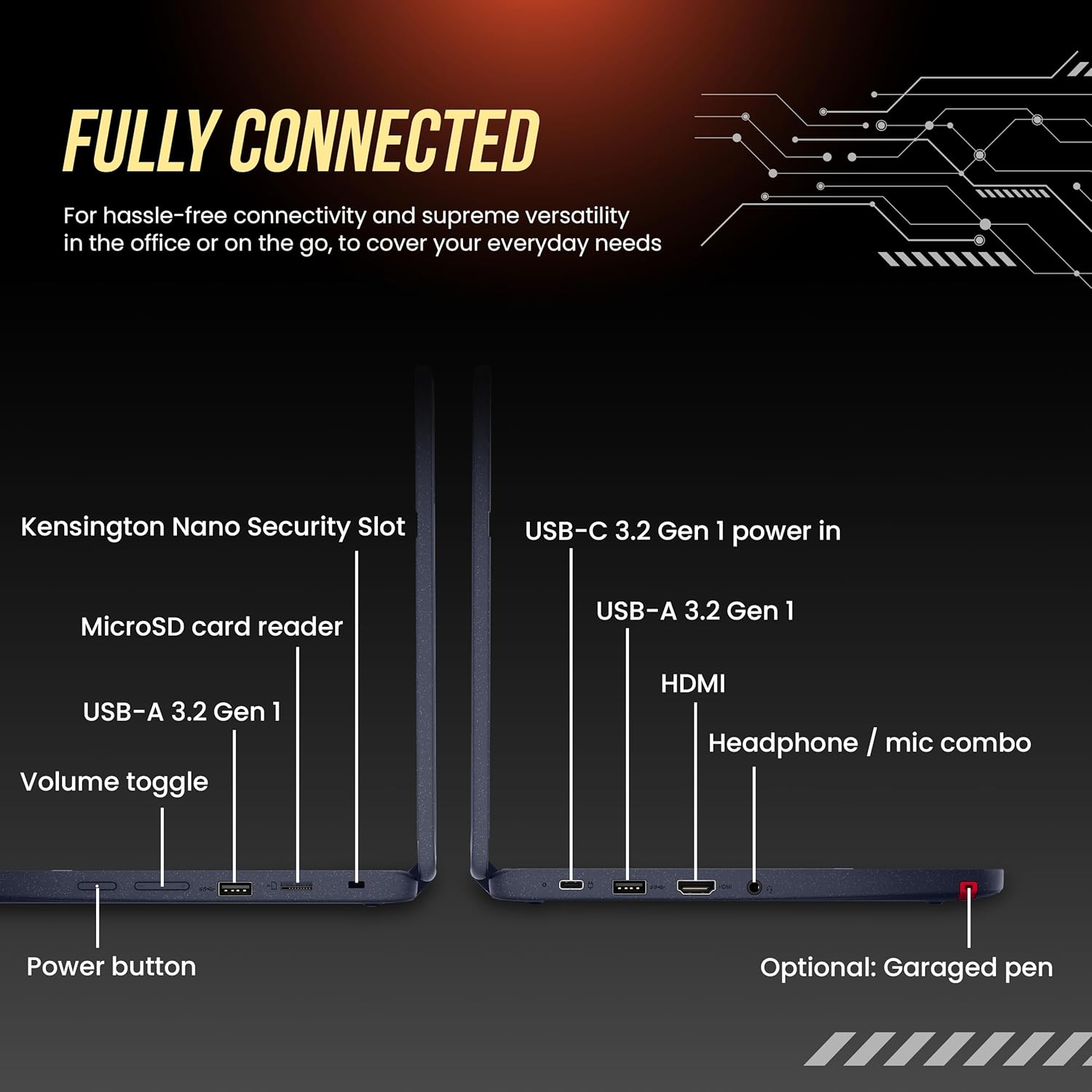 - Ports: 1x USB-C 3.2 Gen 1, 2x USB-A 3.2 Gen 1, 1x Headphone/mic combo, 1x HDMI 1.4b, 1x MicroSD card reader, Kensington Nano Security Slot