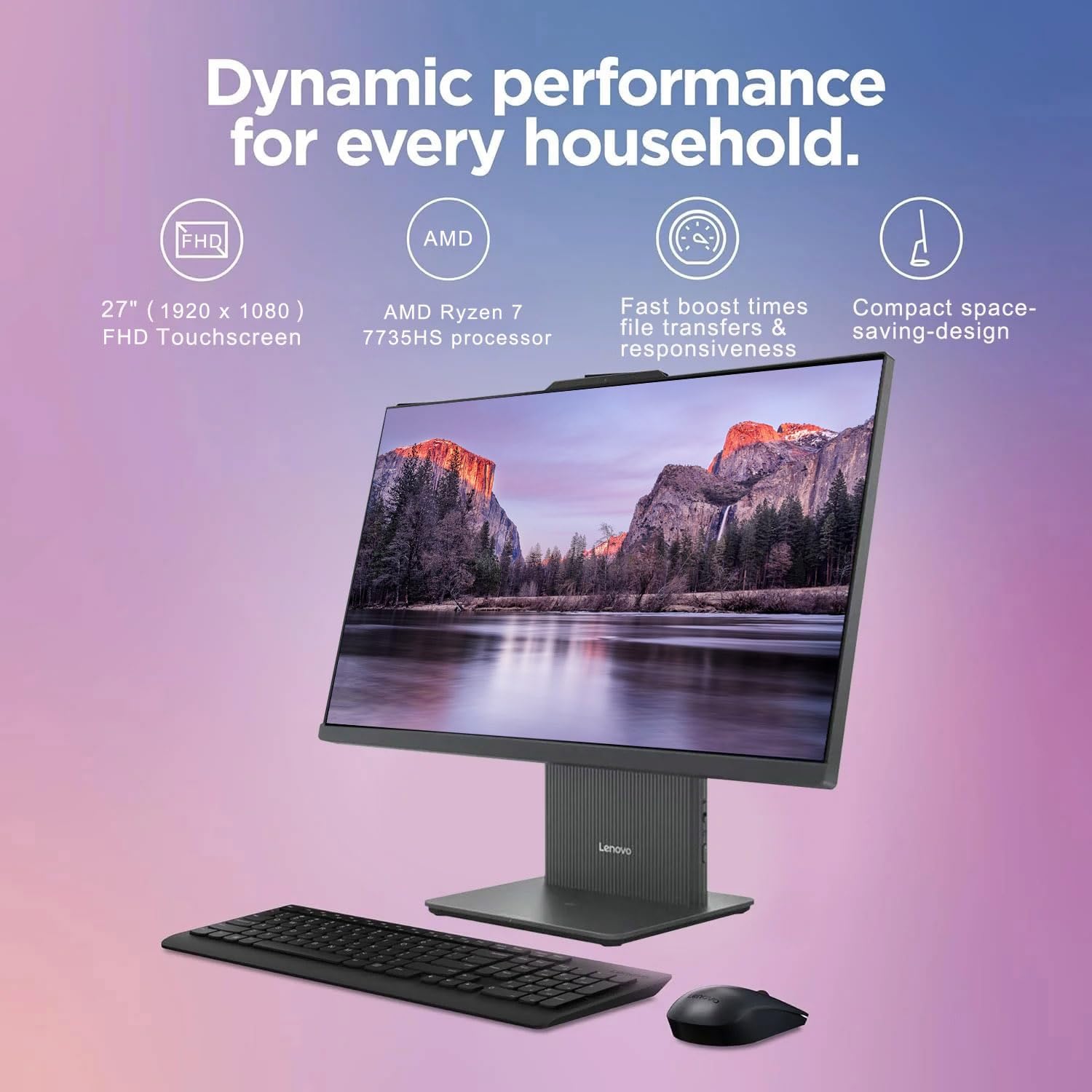 Introducing the Lenovo IdeaCentre I 27" All-in-One Desktop, a perfect blend of style and performance for both business and personal use. With its vibrant FHD touchscreen display, powerful AMD Ryzen processor, and ample memory, this desktop delivers a seamless computing experience. The included wireless keyboard and mouse add to the convenience, while its sleek design enhances any workspace.