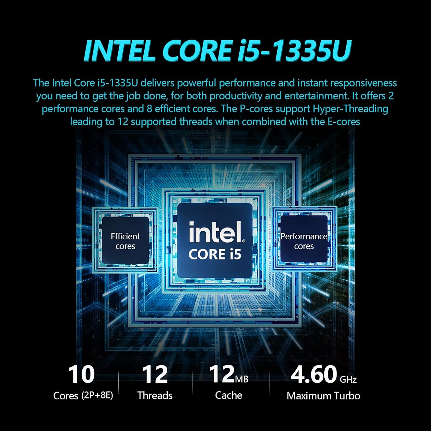 - CPU: Intel Core i5-1335U (up to 4.6GHz, 10 cores, 12 threads)