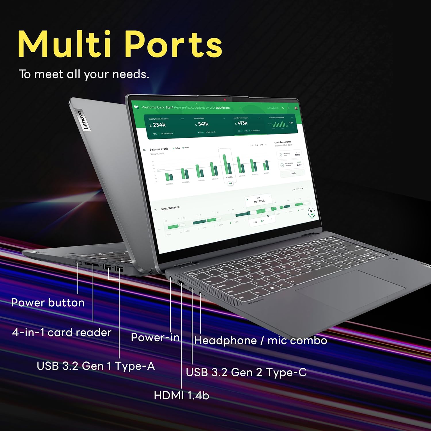 The Lenovo IdeaPad Flex 5i is a versatile 2-in-1 laptop, offering both laptop and tablet functionality. With a 14" FHD+ touchscreen, Intel i3 processor, and ample storage, this device is perfect for productivity and entertainment on the go. Comes with Docking Station Set.