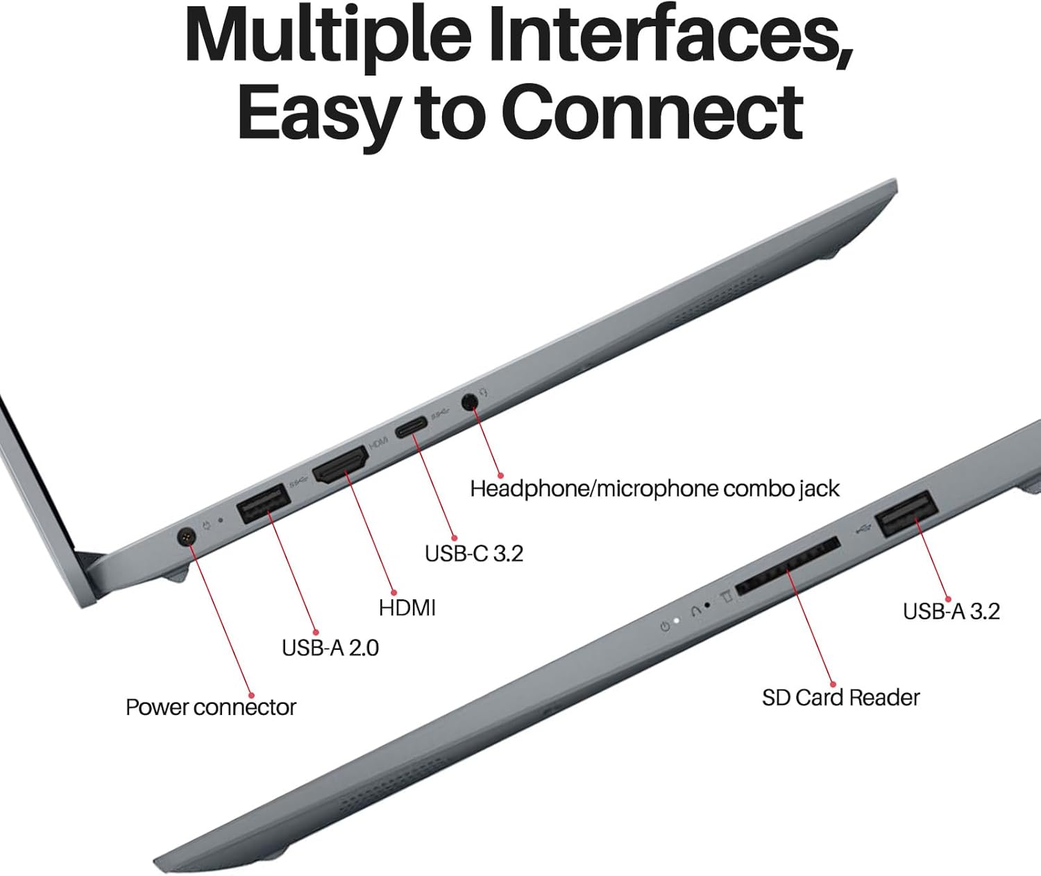 - Ports: 1 x USB-A 2.0, 1 x USB-A 3.2, 1 x USB-C 3.2, HDMI, SD Card Reader