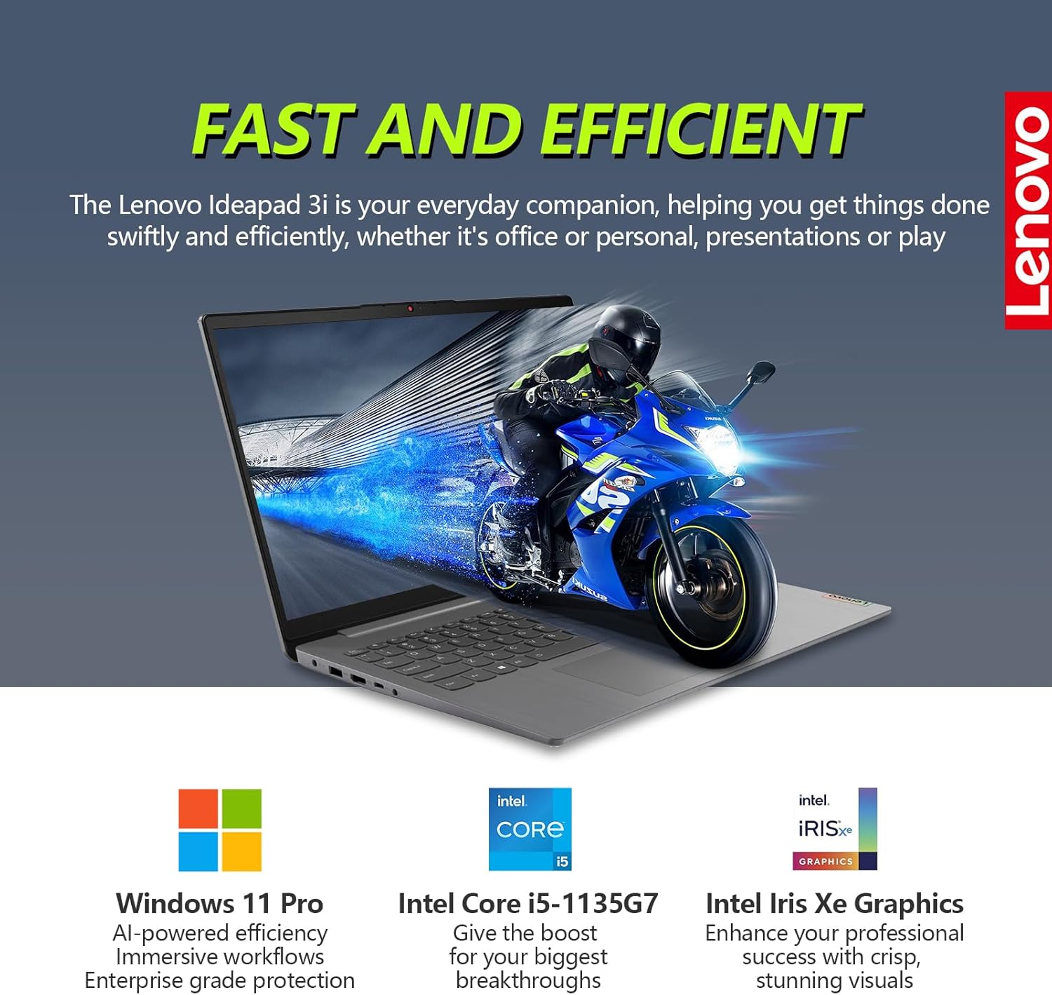 The Lenovo IdeaPad 3 Laptop is designed to empower your productivity with a sleek design and powerful components. Featuring an Intel Core i5 processor, ample memory, and dual storage drives, this laptop delivers smooth performance for multitasking and demanding applications. Includes Windows 11 Pro, Microsoft Office Lifetime, and a suite of accessories to enhance your experience.