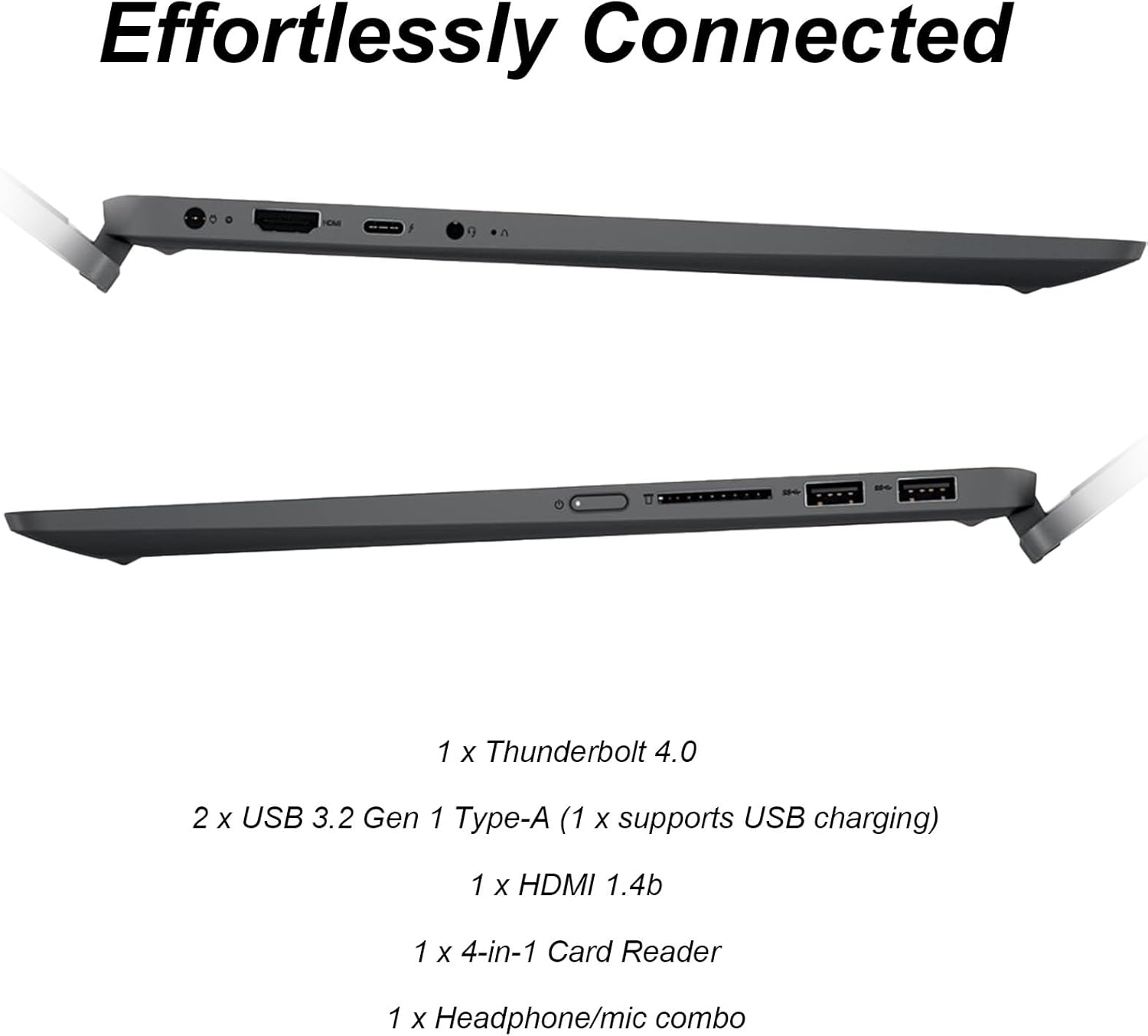- Ports: 1 x Thunderbolt 4.0, 2 x USB 3.2 Gen 1 Type-A, 1 x HDMI 1.4b, 1 x 4-in-1 Card Reader, 1 x Headphone/mic combo
