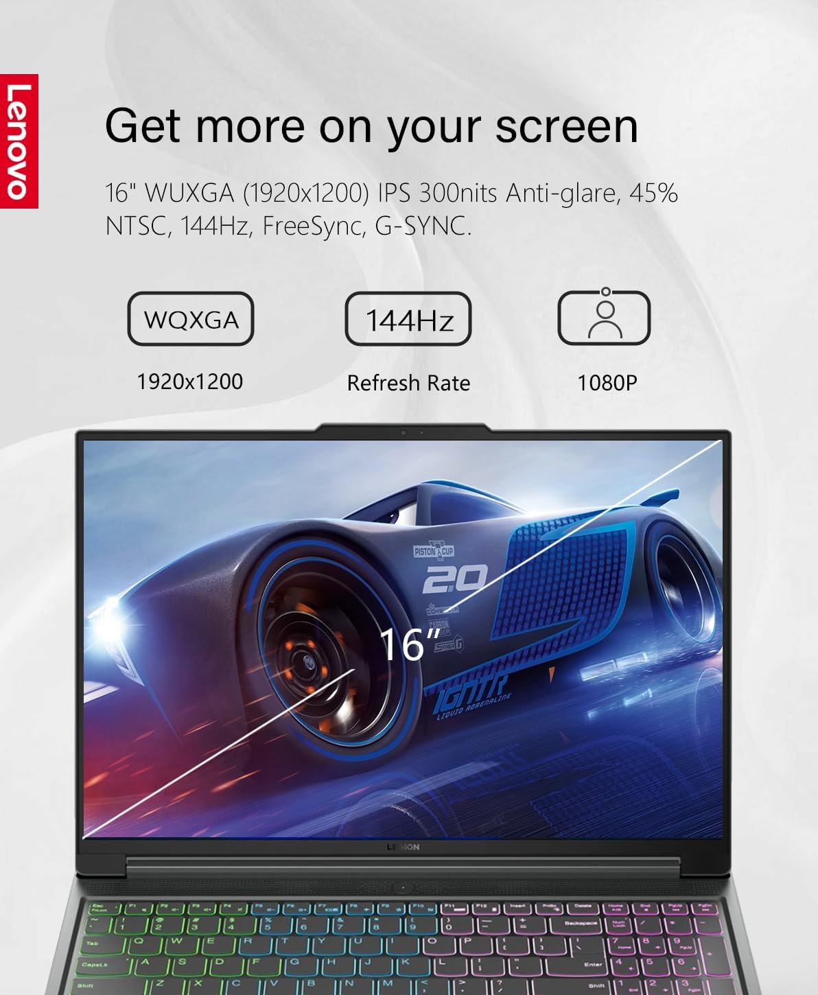 - Display: 16" WUXGA (1920x1200) IPS 300nits Anti-glare, 45% NTSC, 144Hz, FreeSync, G-SYNC