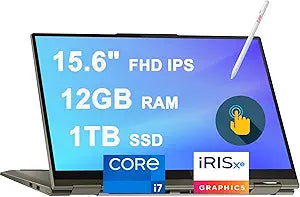 Introducing the Lenovo Yoga 7i 15, a versatile 2-in-1 laptop designed for both work and play. Featuring a vibrant 15.6" FHD IPS touchscreen display with 100% sRGB color accuracy, the Yoga 7i delivers stunning visuals powered by Intel Iris Xe graphics and enhanced by a user-facing Dolby Atmos speaker system. This laptop is equipped with an 11th Generation Intel Quad-Core i7 processor, 12GB of RAM, and a spacious 1TB SSD, ensuring smooth performance for all your tasks. Includes a pen for enhanced creativity.