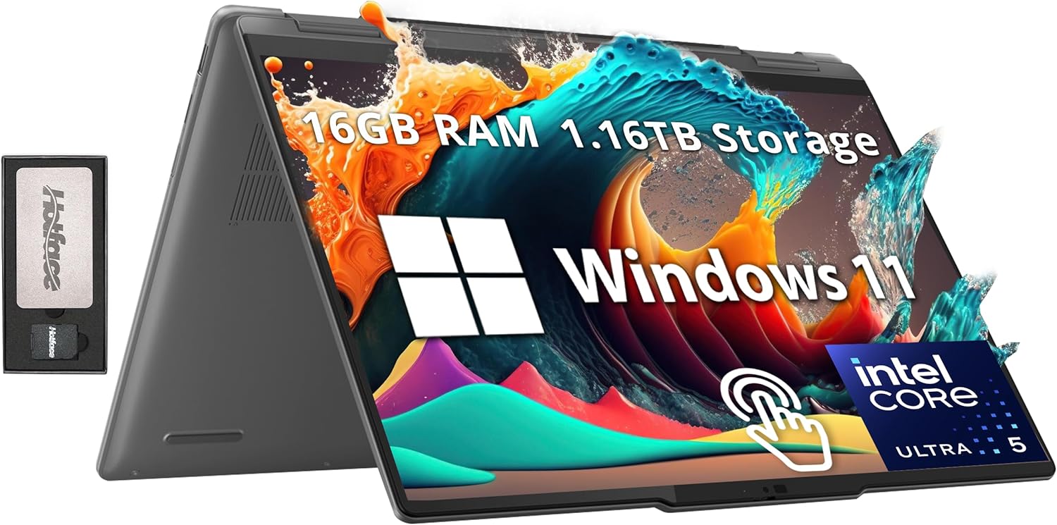 **Specifications:** * **Brand:** Lenovo * **Model:** Yoga 7i * **Display:** 14" 2K Touchscreen (1920 x 1200) IPS * **Processor:** Intel Core Ultra 5 125U * **Memory:** 16GB LPDDR5X RAM * **Storage:** 1TB SSD + 160GB Docking Station Set (1.16TB Total) * **Operating System:** Windows 11 Home * **Connectivity:** Wi-Fi 6E, Bluetooth * **Ports:** 1x USB-A 3.2 Gen 1, 2x USB-C, 1 x HDMI, 1x MicroSD card reader, 1x Headphone/mic combo * **Features:** Backlit Keyboard, Fingerprint Reader, Privacy Camera * **Dimensions:** 12.51 x 8.75 x 0.72 Inches * **Weight:** 3.57lbs * **Color:** GrayWe partner with Amazon and other retailers to provide accurate product information and convenient access to purchase options. As an Amazon Associate we earn from qualifying purchases.