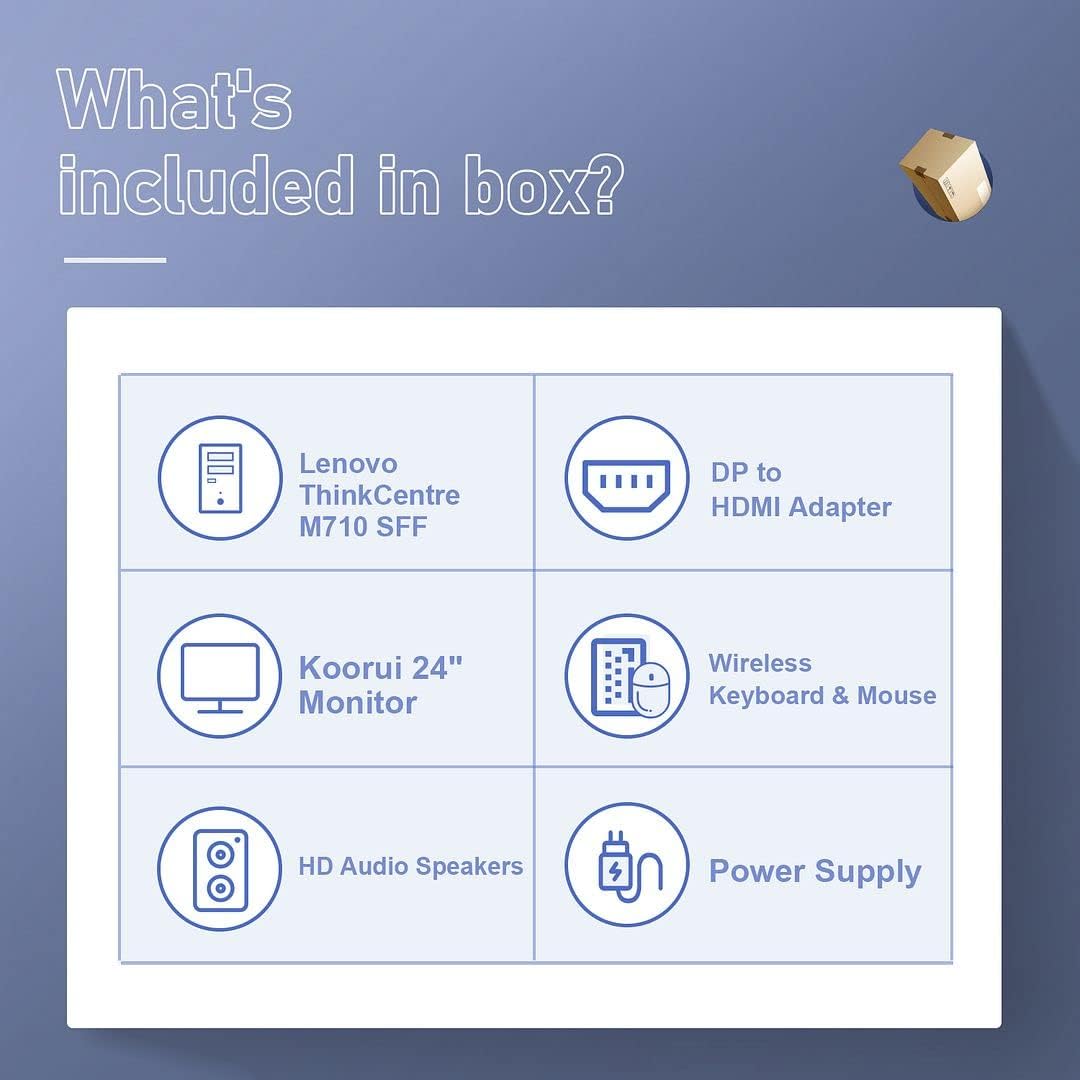 Get everything you need in one package with the Lenovo ThinkCentre M710s SFF Desktop. This renewed computer comes with a monitor, keyboard, mouse, and speakers, making it perfect for home, school, or business use.