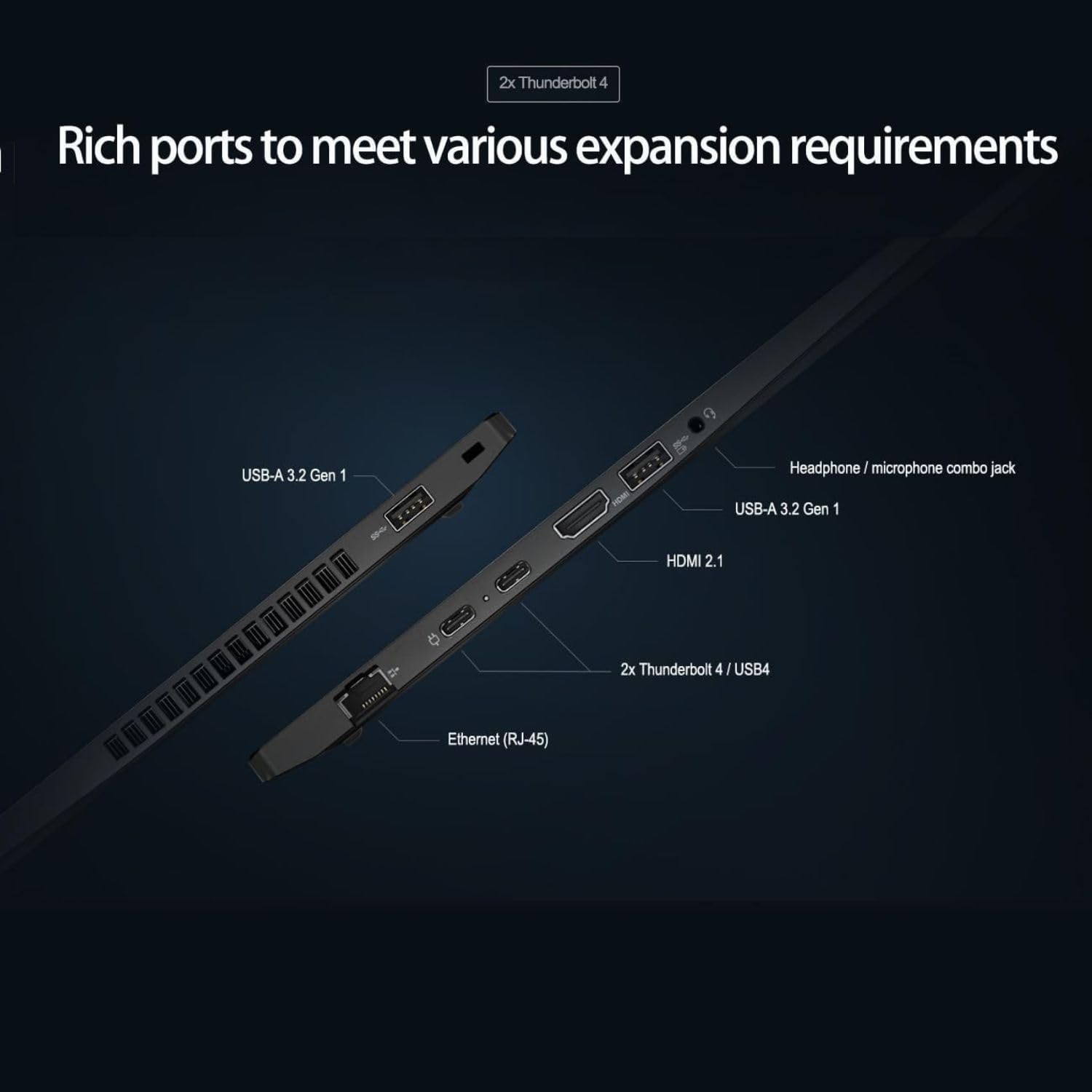 - Ports: 2x USB-A, 2x Thunderbolt 4, 1x RJ-45, 1x HDMI, 1x Headphone/Microphone