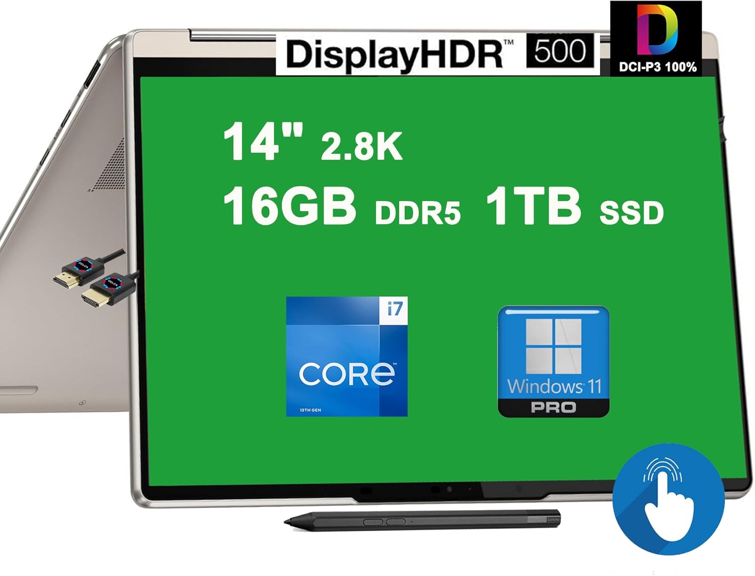 Unleash your creativity with the Lenovo Yoga 9i. This 2-in-1 laptop combines a stunning 14" 2.8K OLED touch display with powerful Intel Core i7 performance. Its flexible design, ample memory, and fast SSD storage make it ideal for both work and play. Comes with Windows 11 Pro for enhanced productivity and security.