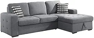 The Solomon 2-Piece Fabric Sectional offers a versatile solution for seating, storage, and sleep needs in your living room. This configurable sectional features a left-side two-seat segment and a pop-up chaise with hidden storage, all covered in a neutral gray fabric. Perfect for transitional décor, this sectional combines comfort with practical design.