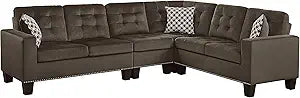 Transform your living space with the Lexicon Leighton 2-Piece Fabric Reversible Sectional Sofa in Chocolate. Designed for ultimate relaxation, this sectional features plush pocket coil seats and high-density foam, inviting you to unwind in luxurious comfort. Its stylish design is enhanced with decorative pillows, nail head trim, and tufted detailing, adding a touch of class to any living room.