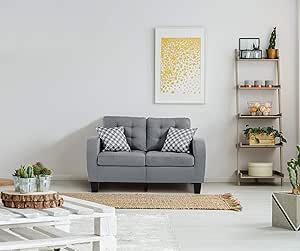 Introducing the Lexicon Ridgemont Loveseat, designed to bring a touch of modern elegance to your living room. With its gray textured fabric and tufted detailing, this loveseat offers both comfort and style, perfect for any contemporary home.