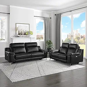 The Lexicon Betzer 2-Piece Living Room Set offers modern styling and ultimate comfort with its power reclining features. Upholstered in a genuine leather match, this set includes a loveseat and sofa, providing a sophisticated and relaxing space for your living room.