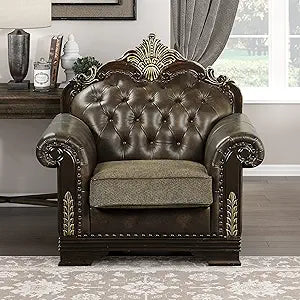 - Style: Traditional Look + Rolled Arm + Button Tufting + Nailhead Trim + Scroll Carving