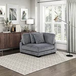 The Lexicon Bathurst Modular Corner Seat in Gray offers both style and comfort to your living room. Upholstered in a soft gray corduroy fabric with a sturdy wooden frame, this corner seat features a foam boxed pocket coil cushion for optimal support. Its modular design allows for flexible arrangement, making it a perfect addition to any contemporary home.
