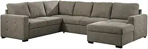 The Elton 3-Piece Fabric Sectional offers a transitional design paired with practical features, perfect for modern living. This sectional includes a right-side chaise with hidden storage and a pull-out bed, providing both comfort and convenience. Upholstered in a brown textured fabric, it seamlessly blends with any decor.