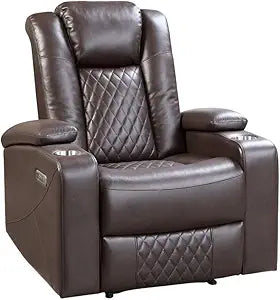 Lexicon Brown Faux Leather Power Reclining Chair - Headrest & Storage