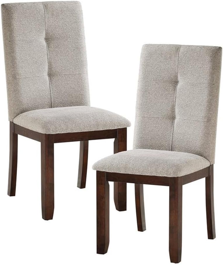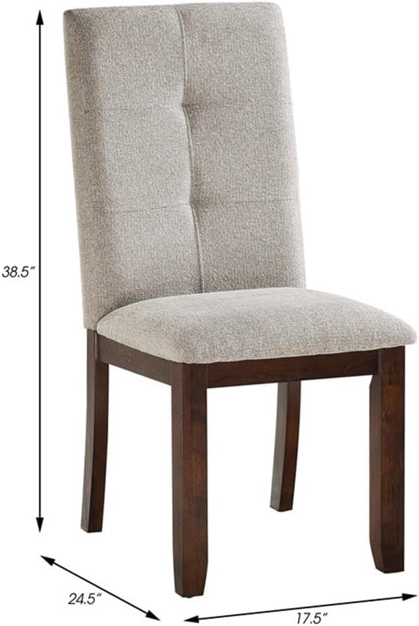 * **Material:** Wood * **Finish:** Dark Cherry * **Upholstery:** Fabric * **Fabric Content:** 100% Polyester * **Frame Construction:** Corner Block * **Wood Type:** Asian Hardwood * **Product Dimensions:** 38.5"H x 17.5"W x 24.5"D * **Product Weight:** 33 lbs * **Weight Capacity:** 250 lbs * **Seat Dimensions:** 19"H x 17.5"W x 17"D * **Set:** Set of 2We partner with Amazon and other retailers to provide accurate product information and convenient access to purchase options. As an Amazon Associate we earn from qualifying purchases.