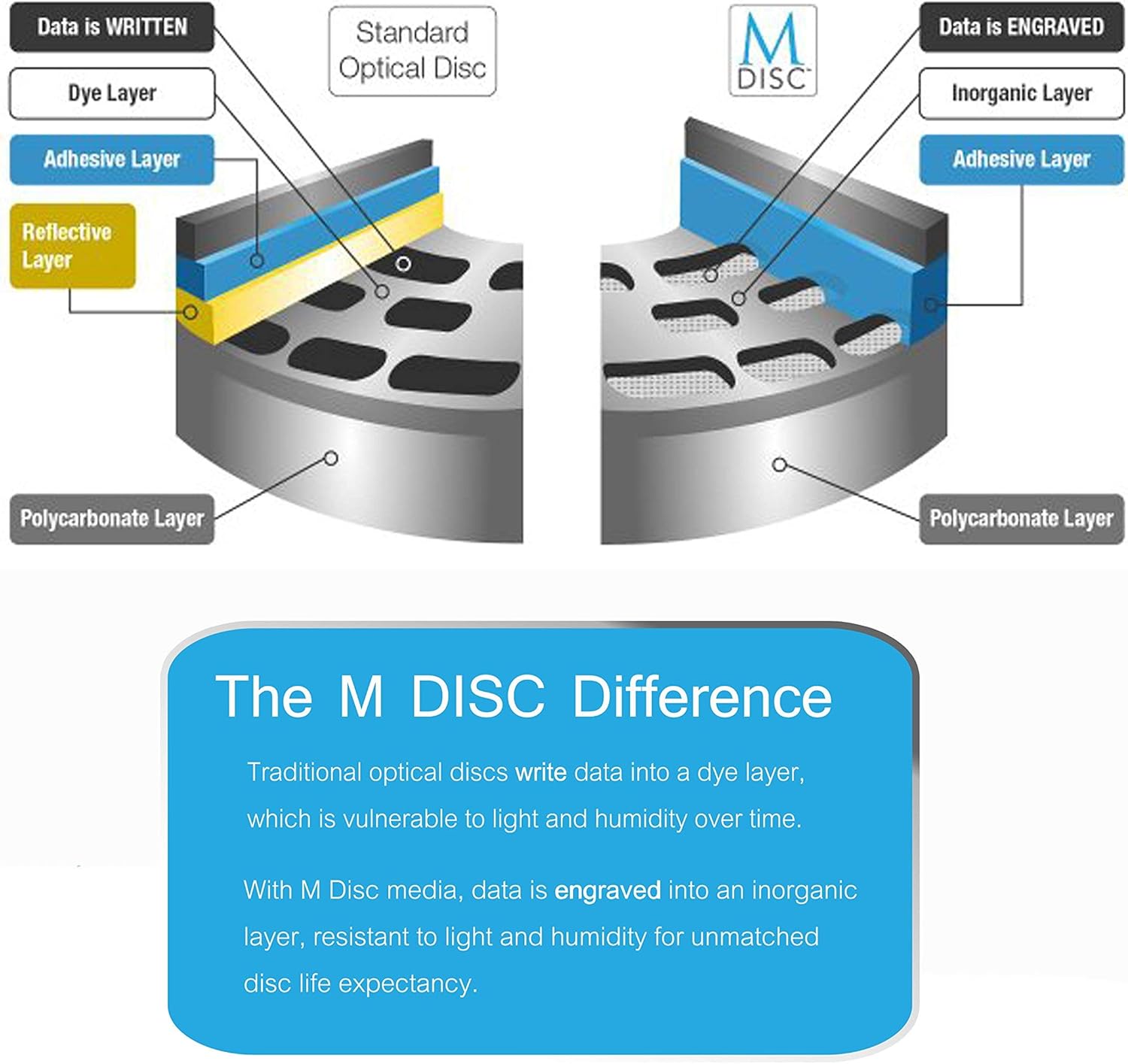 - M-Disc Technology: Data storage lasting up to 1000 years