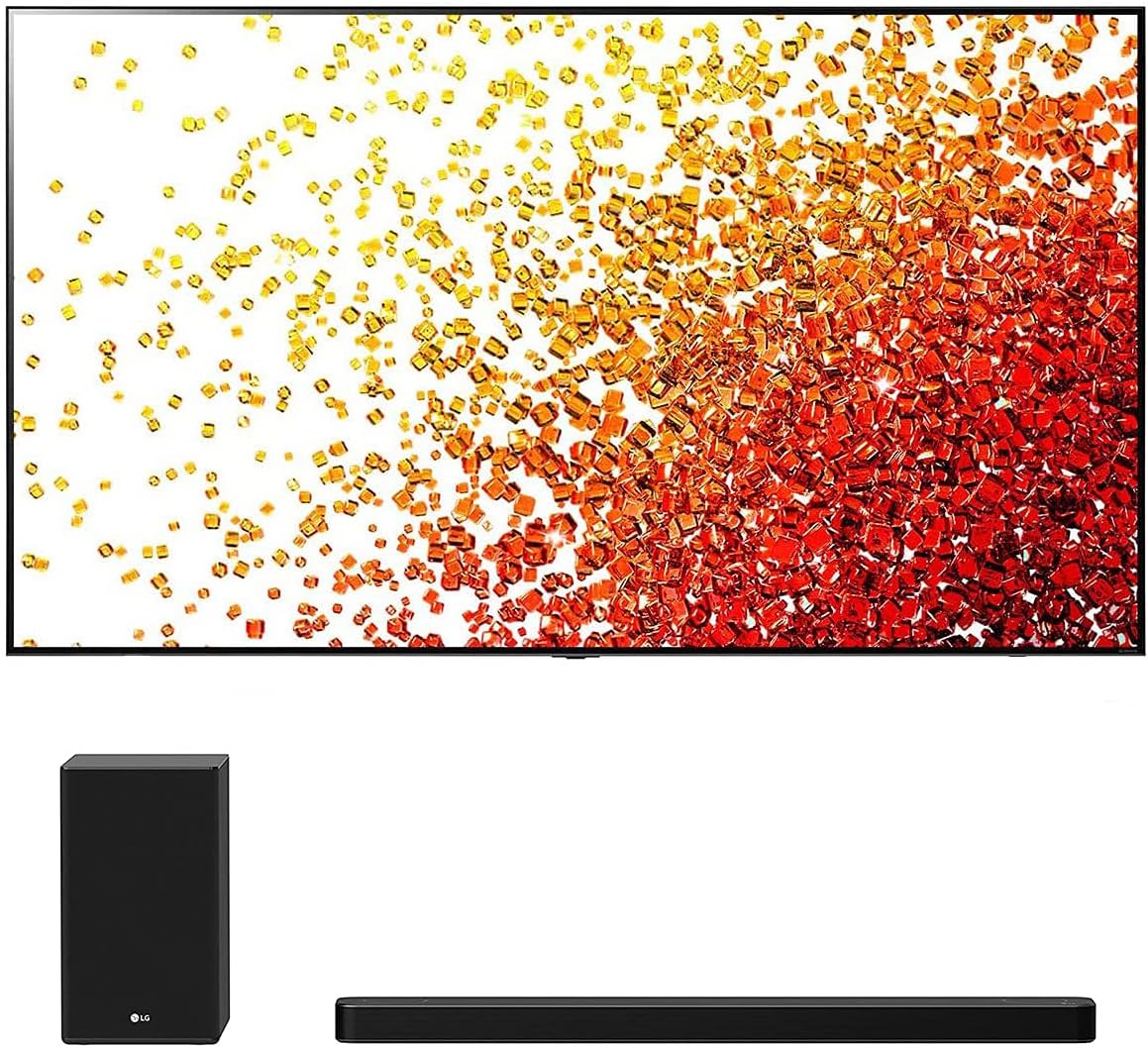 Experience cinema-quality entertainment with the LG 55NANO90UPA 55" 4K Ultra HD TV, paired with the SP8YA 3.1.2CH Sound Bar and Subwoofer featuring Dolby Atmos. **Overview:** This used bundle delivers stunning visuals and immersive audio, thanks to LG's NanoCell technology and Dolby's advanced sound processing. Enjoy rich colors, sharp details, and multi-dimensional sound that puts you in the middle of the action. **Specifications - LG 55NANO90UPA 55" 4K TV:** * Display Type: Real 4K NanoCell Display * Resolution: 4K Ultra HD (3,840 x 2,160) * Picture Processor: a7 Gen 4 Processor 4K - AI 4K Upscaling * Refresh Rate: 120Hz Native * Gaming Features: Game Optimizer, VRR, HgiG, FreeSync Premium, ALLM * Smart Features: webOS, App Store, LG Channels, Gallery Mode, Home Dashboard, Full Web Browser, Sports Alert, Streaming Services, Voice Assistant Compatible, Magic Remote * Connectivity: Wi-Fi, Bluetooth, IP Control, Simplink, TV Tuner, Smart Phone Connectivity, 4 HDMI, 3 USB, RF Connection, Ethernet, RS-232C Mini, Optical **Specifications - LG SP8YA Sound Bar and Subwoofer:** * Total Power: 440 W * Channel: 3.1.2 Channel * Audio Technology: Dolby Atmos & DTS X, Meridian Audio Technology * Video Technology: Dolby Vision & HDR10 Passthrough * Connectivity: HDMI eARC/ARC, AI Sound Pro, SIMPLINK, Bluetooth 5.0, Optical In, Wi-Fi, 1 HDMI 2.1 In, 1 HDMI 2.1 Out, USB * Sound Modes: AI Sound Pro, Bass Blast +, Standard, Music, DTS:X, Dolby Atmos, Cinema, Clear Voice, Sports, Game **Condition:** * Used. No manufacturer coverage. **In the Box:** * TV: TV, Legs, Magic Remote (Battery Included), Power Cable, Quick Start Guide, E-Manual * Soundbar: Remote Control & Batteries, Optical Cable, Wall Mount BracketWe partner with Amazon and other retailers to provide accurate product information and convenient access to purchase options. As an Amazon Associate we earn from qualifying purchases.