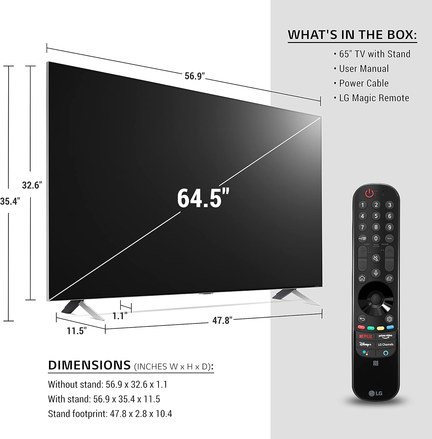 **Specifications:** * **Brand:** LG * **Model:** 65QNED99UPA * **Display Technology:** QNED MiniLED with Quantum Dot NanoCell Color * **Screen Size:** 65 inches * **Resolution:** 8K Ultra HD * **Refresh Rate:** 120Hz * **Smart TV:** Yes * **Voice Control:** Alexa Built-in * **Wireless Connectivity:** Wi-Fi 6 * **Processor:** 8K AI Processor * **Audio Enhancement:** AI Sound ProWe partner with Amazon and other retailers to provide accurate product information and convenient access to purchase options. As an Amazon Associate we earn from qualifying purchases.