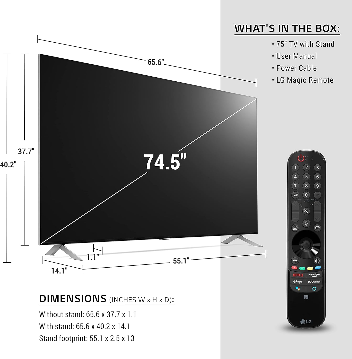 The LG 75QNED99UPA QNED MiniLED 99 Series TV offers stunning 8K resolution and advanced NanoCell technology for vivid colors and exceptional clarity. With Alexa built-in and a powerful A9 Gen 4 Intelligent Processor, this smart UHD TV delivers an immersive entertainment experience.