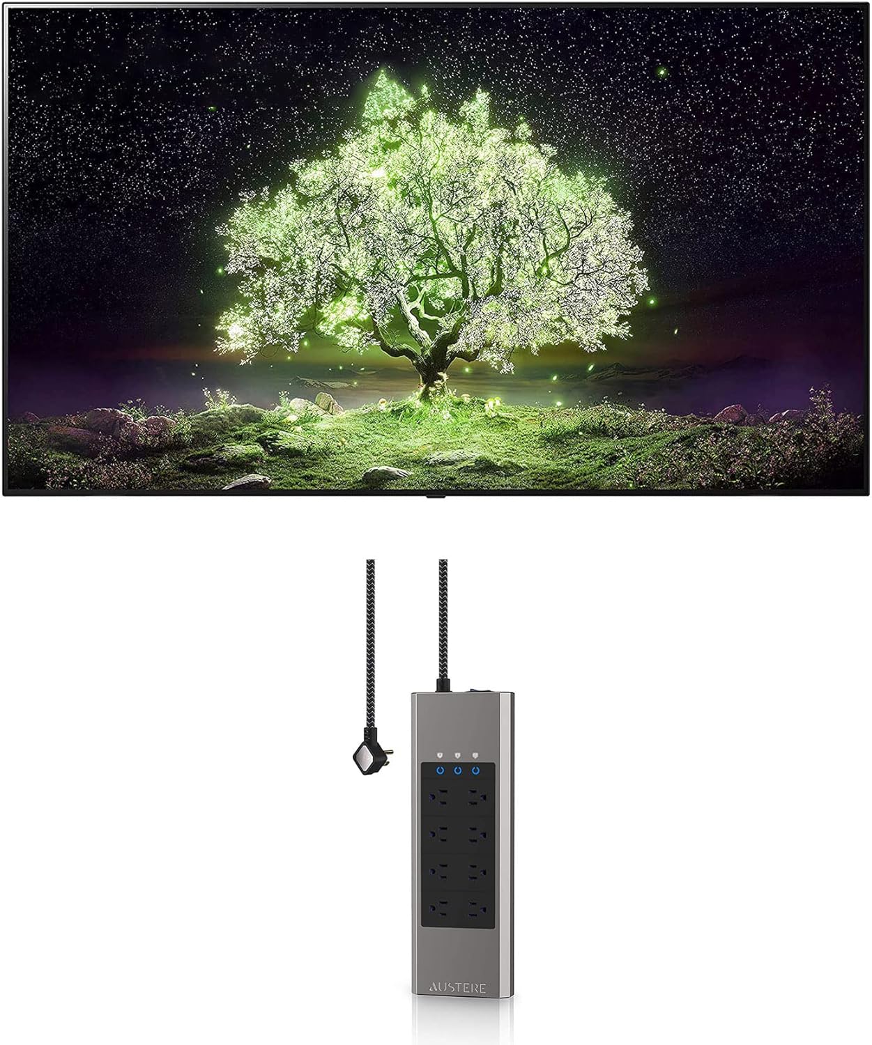 The LG OLED77A1PUA 77" A1 Series OLED 4K Smart Ultra HD TV, paired with the Austere 7S-PS8-US1 VII-Series 8 Outlet Power, delivers stunning picture quality and advanced smart features. This bundle combines LG's innovative OLED technology with reliable power protection for an immersive entertainment experience.