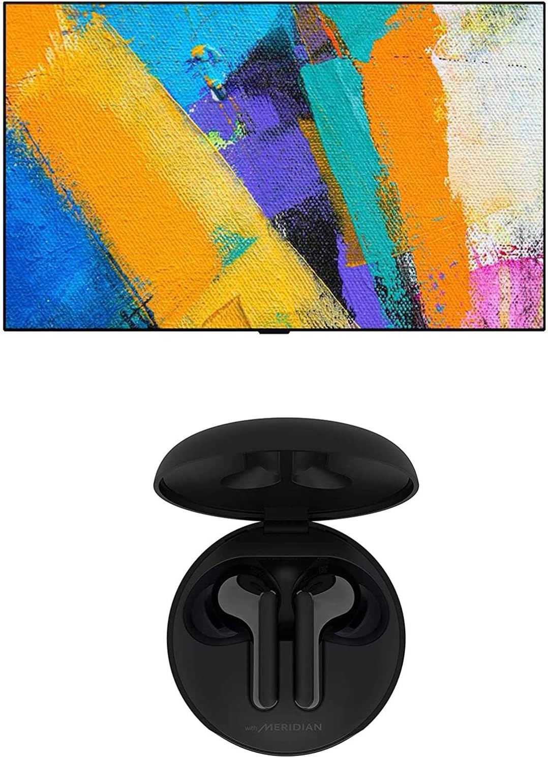 The LG OLED77GXPUA 77" GX 4K Smart OLED TV delivers unparalleled picture quality with self-lighting OLED technology. Paired with the LG Tone Free Earbuds, enjoy a complete immersive experience.