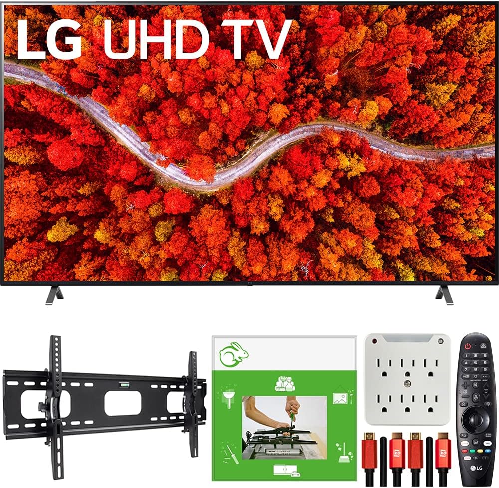 Immerse yourself in vibrant visuals with the LG 86UP8770PUA 86 Inch AI ThinQ 4K UHD Smart TV, bundled with essential accessories for a seamless setup and enhanced viewing experience.