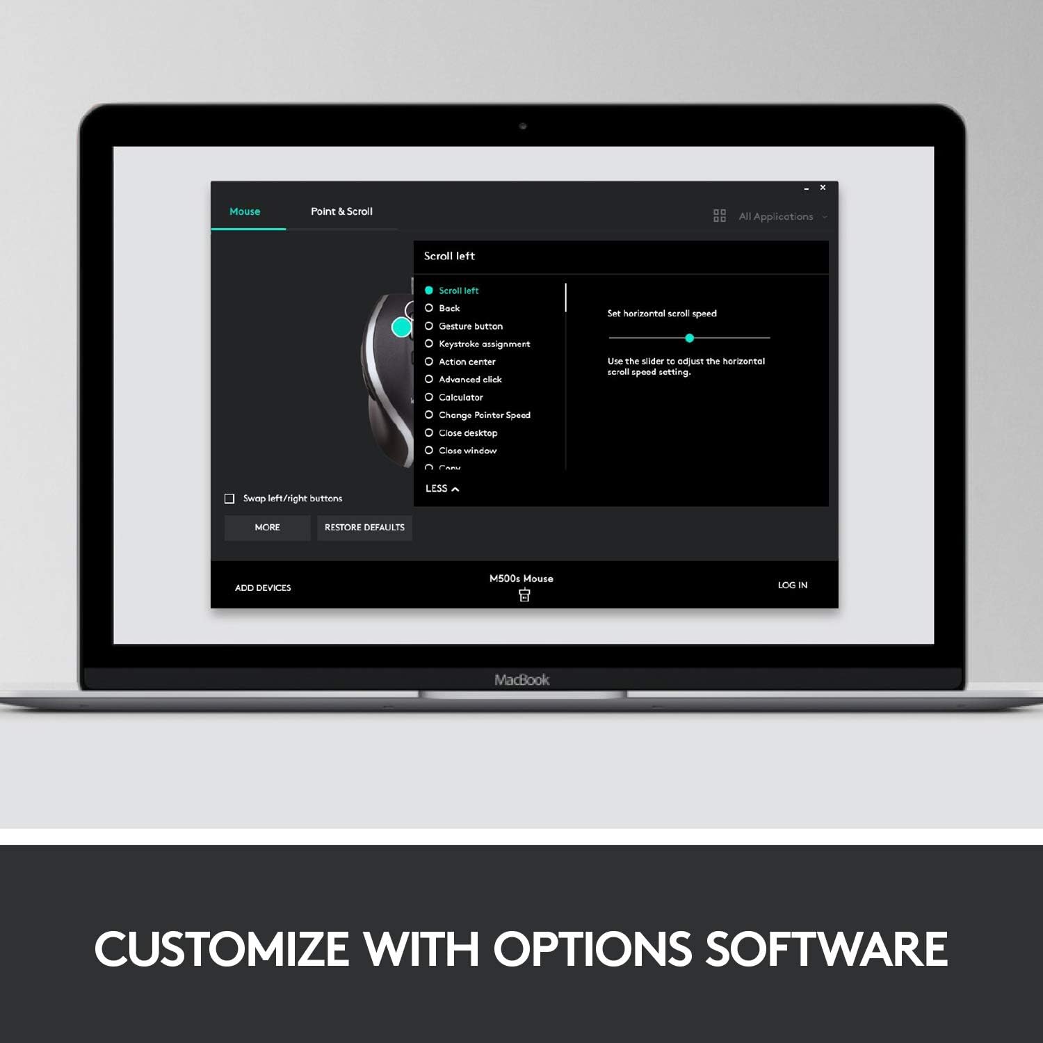 The Logitech Advanced Corded Mouse M500s is designed to enhance productivity with its hyper-fast scrolling and customizable buttons. Enjoy precise cursor control with adjustable DPI and comfortable use with soft side grips. The plug-and-play USB connection ensures it works right out of the box.