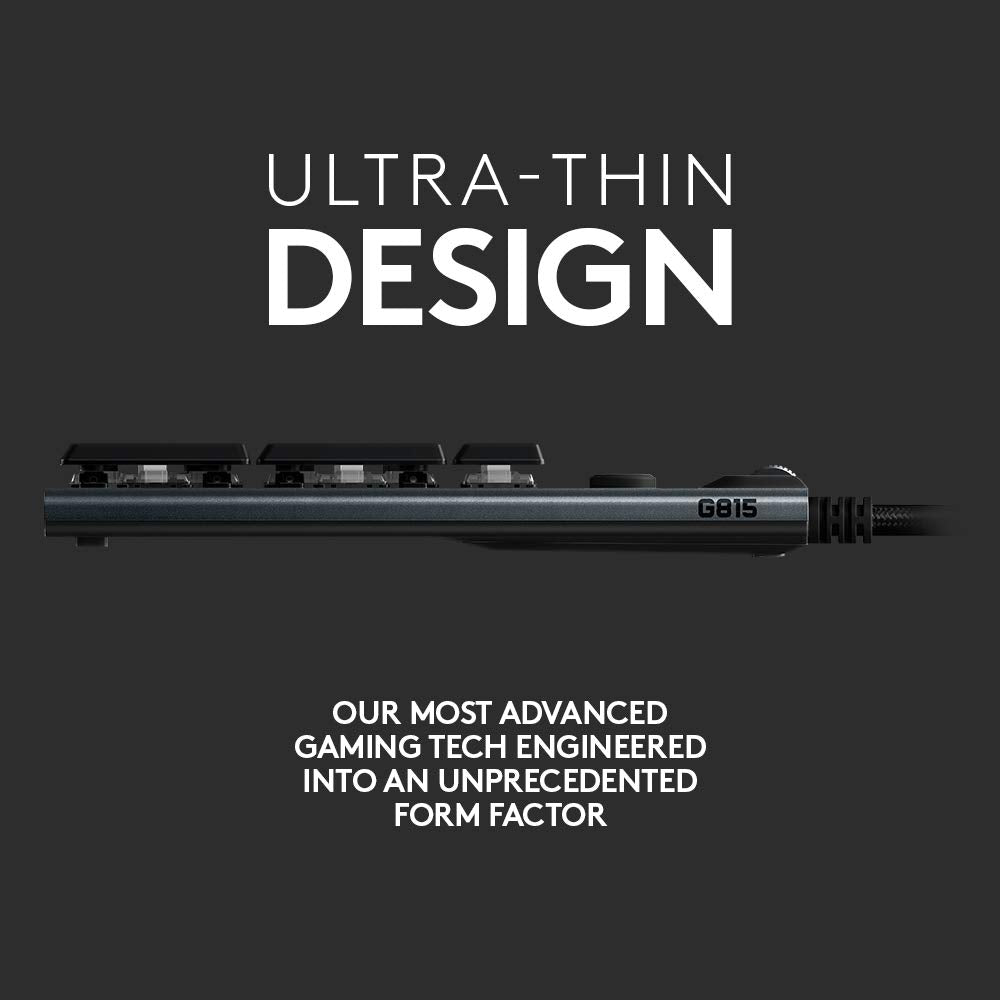 The Logitech G815 LIGHTSYNC RGB Mechanical Gaming Keyboard combines a sleek, low-profile design with high-performance mechanical switches. Featuring customizable RGB lighting, programmable G-keys, and a USB passthrough, this keyboard offers both functionality and style for the discerning gamer.