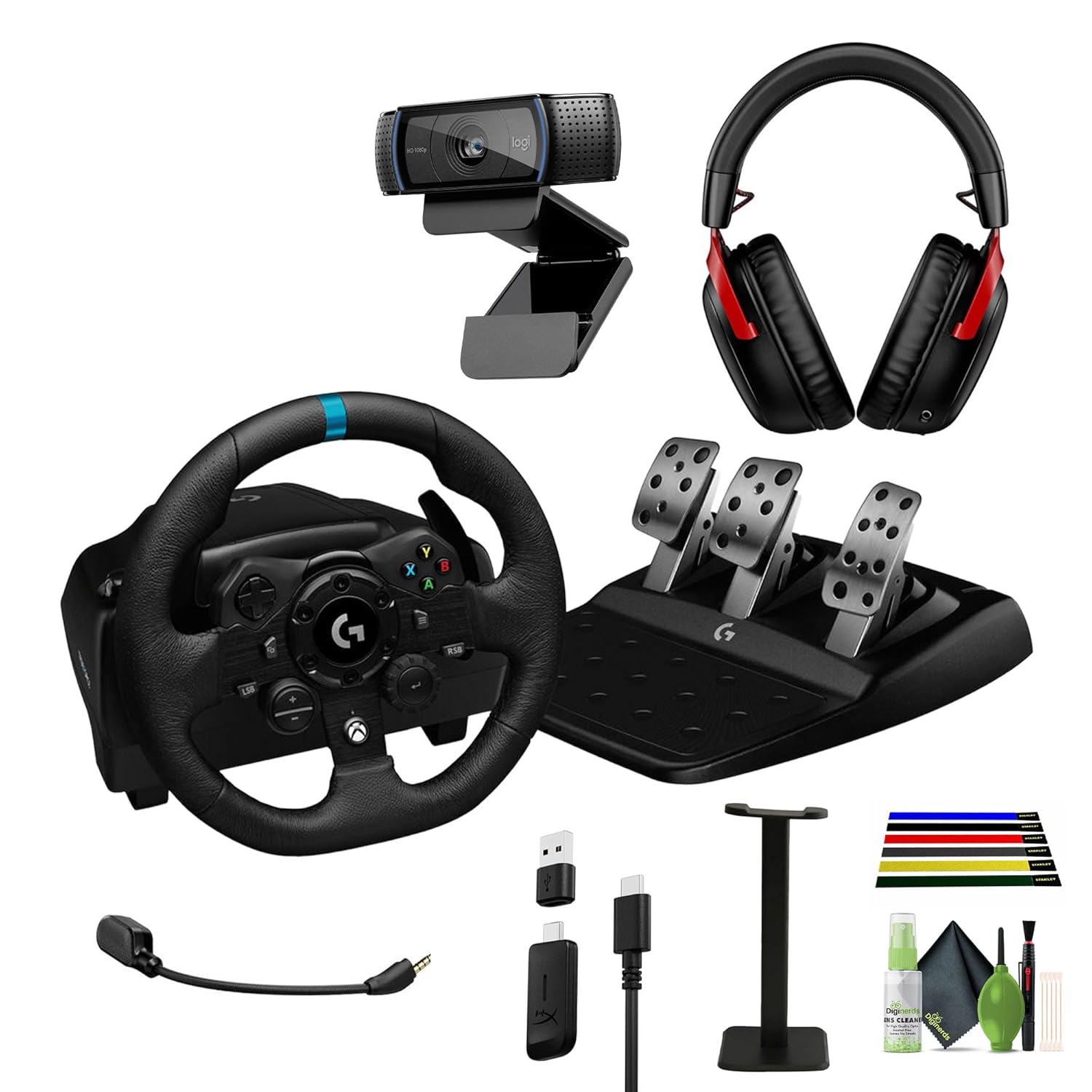 Logitech G923 Racing Wheel, HyperX Headset, Webcam Bundle