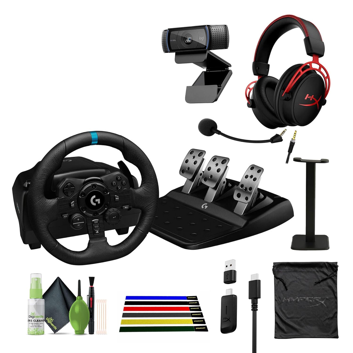 - Bundle Includes: HyperX Cloud Alpha Wireless Headset, Logitech C920x Webcam, Logitech G G923 Racing Wheel and Pedals, Headphone Stand, Diginerds Cleaning Kit, Cable Wraps