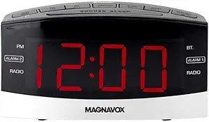 The Magnavox MR41806BT Dual Alarm Digital Clock Radio is a reliable and functional bedside companion. This refurbished unit offers dual alarms, a digital display, and Bluetooth connectivity.