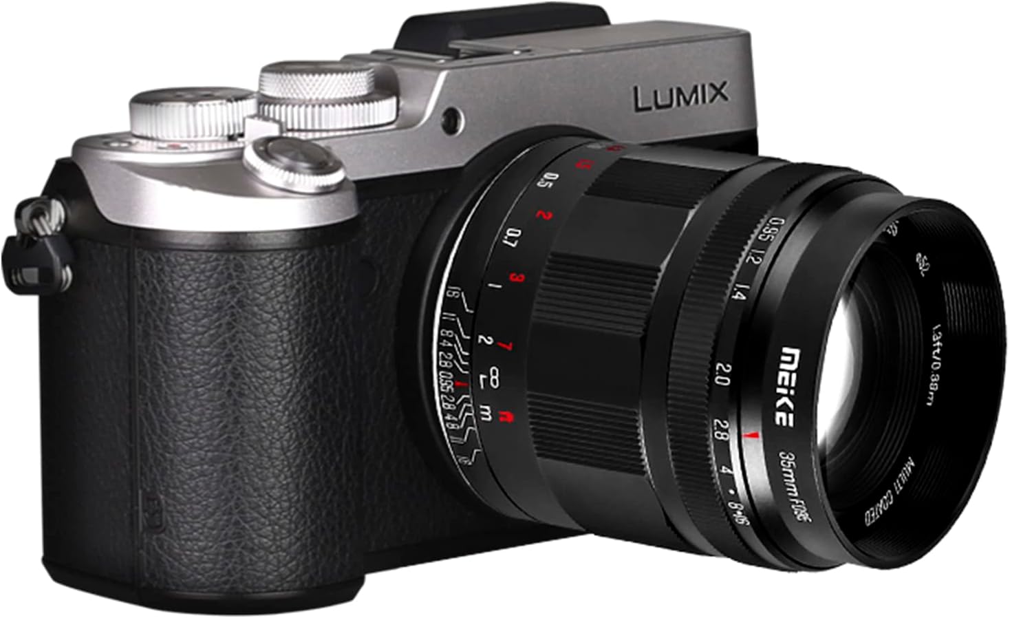 The Meike 35mm f/0.95 lens is a large aperture manual focus lens designed for MFT mount cameras. Compatible with Panasonic Lumix and Olympus M43 mirrorless cameras, this lens excels in low light conditions and provides exceptional depth of field control.