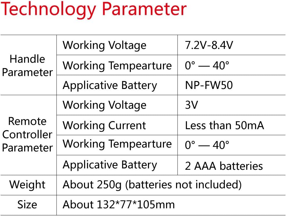 - Battery Compatibility: 1 or 2 NP-FW50 Lithium Batteries (not included)