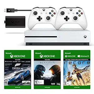 This Xbox One S bundle provides everything you need to start gaming. Includes the Xbox One S 500GB console, two wireless controllers, a Play & Charge Kit, and all necessary cables.