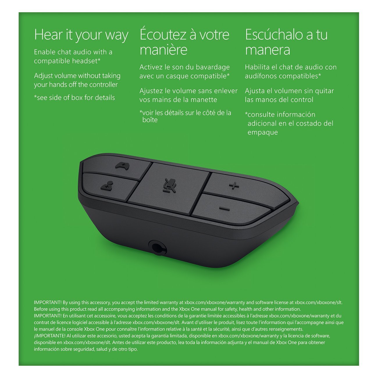 The Xbox One Stereo Headset Adapter allows you to connect your favorite compatible headset and customize your audio experience. Easily adjust chat audio without removing your hands from the controller. For game audio, simply connect directly to your console or TV. Enjoy immersive sound and clear communication with this essential accessory.