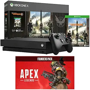 The Microsoft Xbox One X Bundle delivers exceptional gaming experiences with stunning 4K resolution and HDR technology. This bundle includes a 1TB console, Tom Clancy's The Division 2 game, and the Apex Legends Founder's Pack Digital Download, offering a complete gaming package for both new and seasoned players.